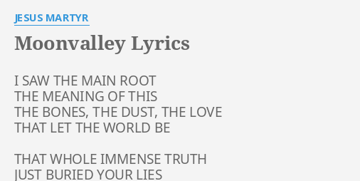 Moonvalley Lyrics By Jesus Martyr I Saw The Main - Read martyr's love from the story martyr's love (gxg) by pulangmakata (pulang makata) with 42,495 reads.
